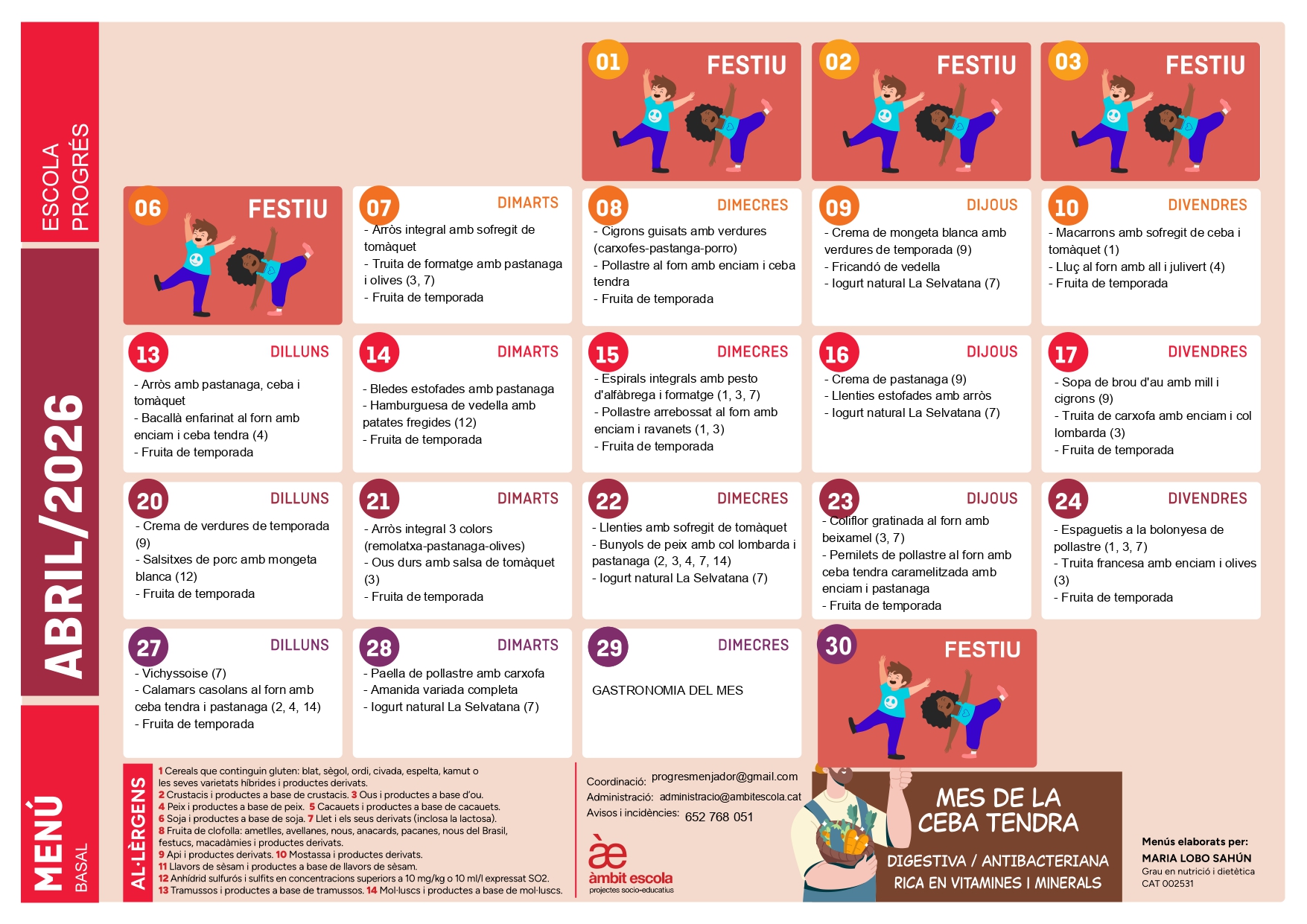 Menú escolar d’abril: saludable i de temporada perquè els infants gaudeixin d’un mes ple d’energia i bons sabors!