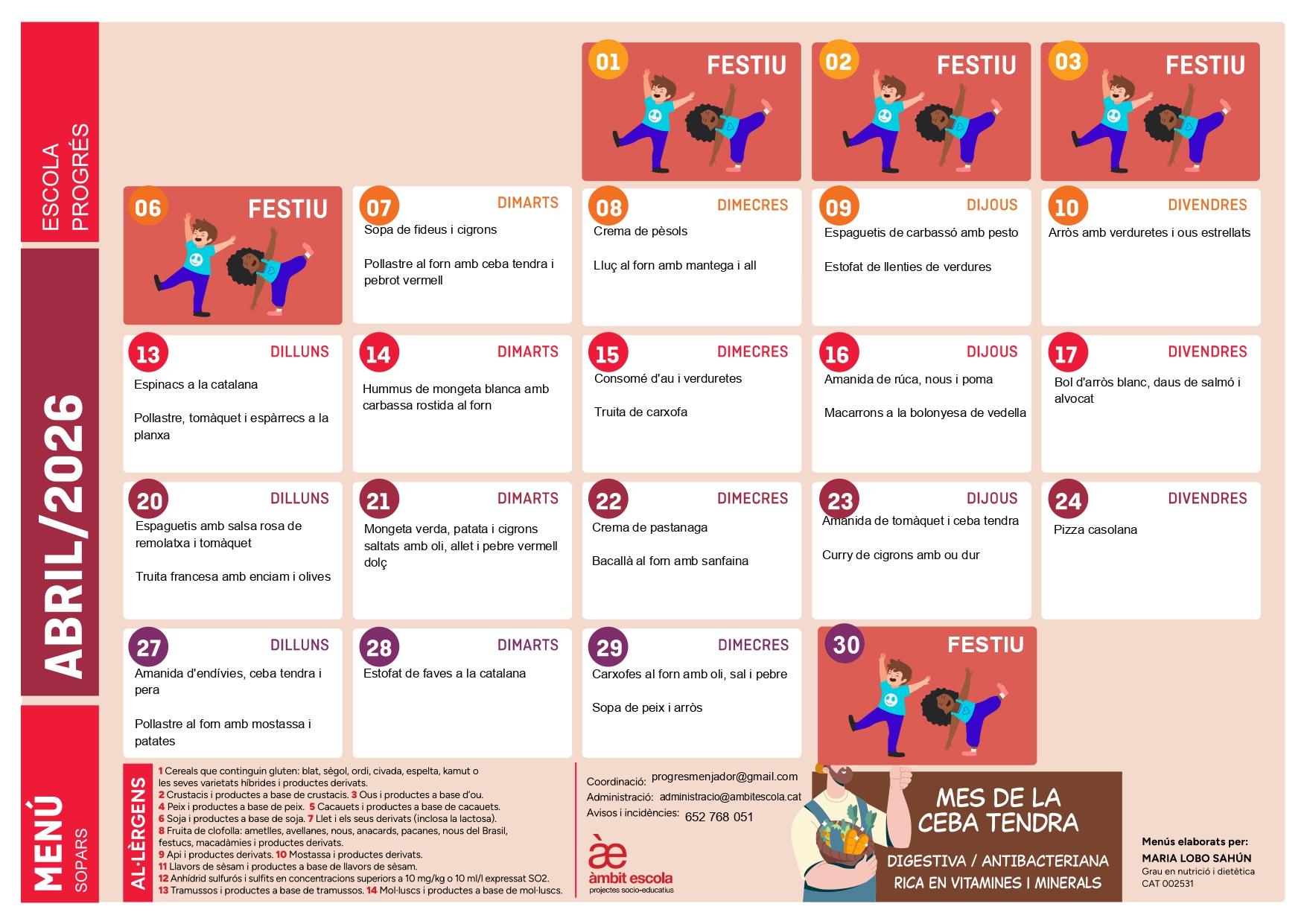 I això no és tot! Us deixem el menú del mes, la recepta i el menú de sopars: