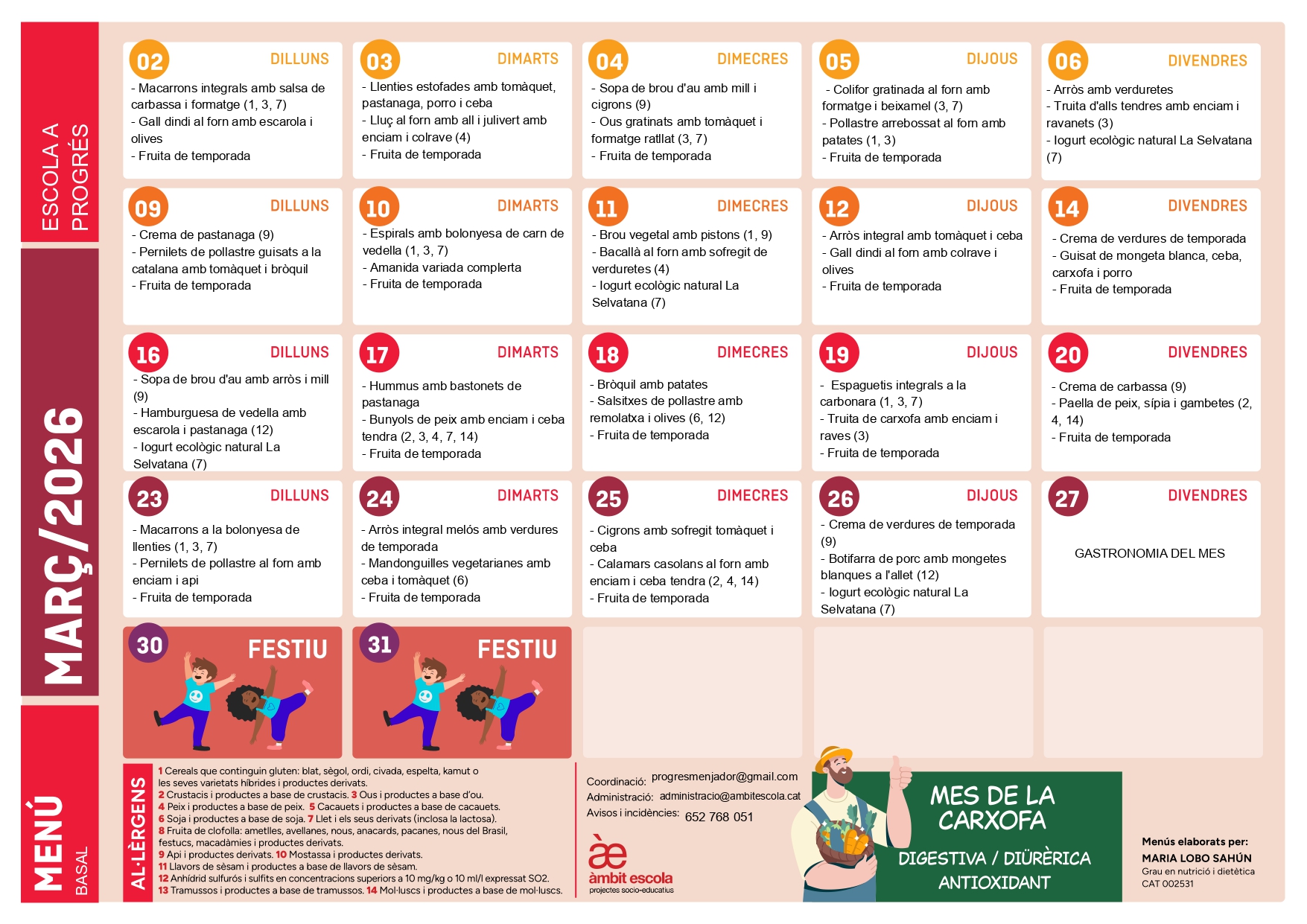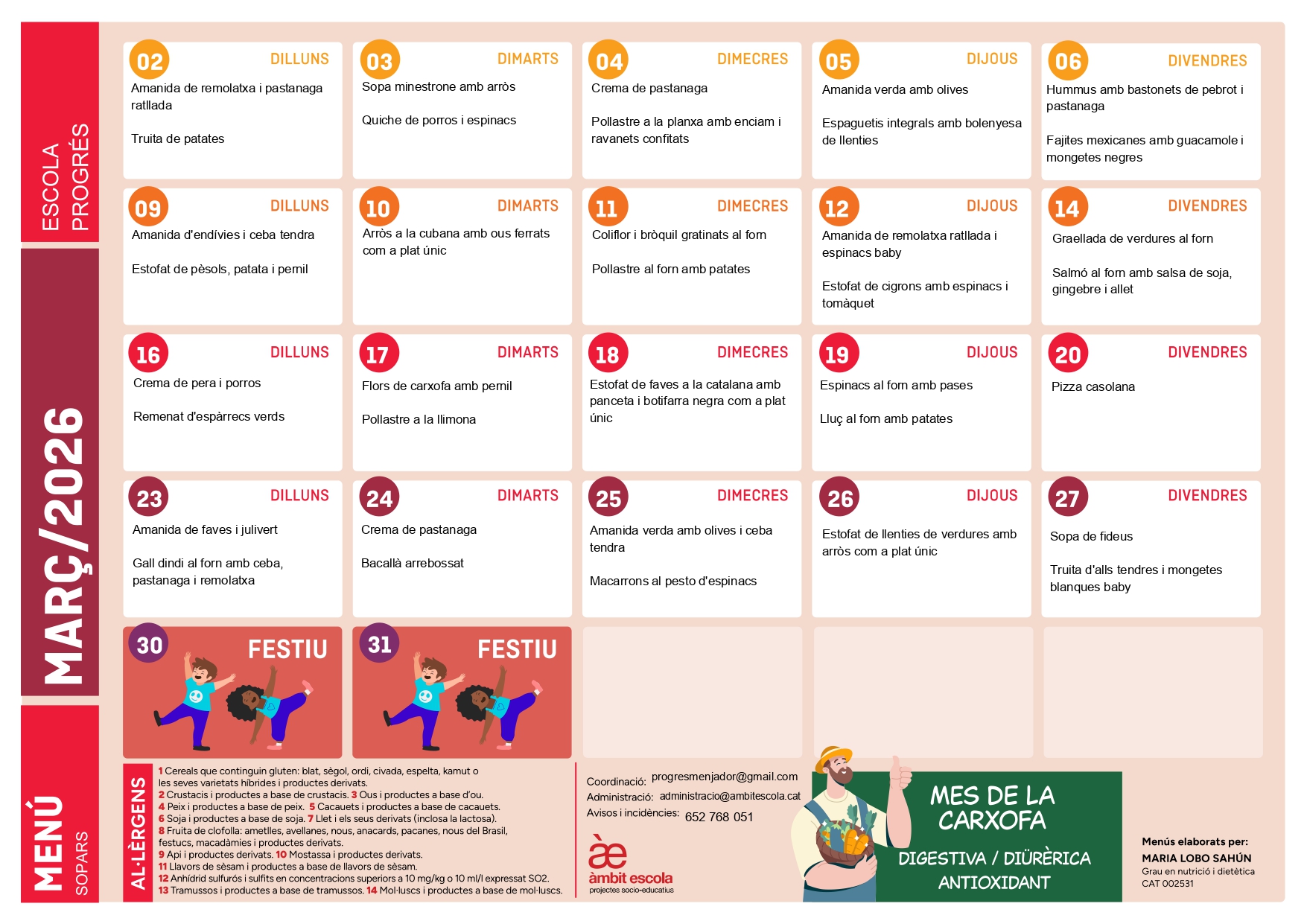 Menú escolar de març: saludables i de temporada perquè els infants gaudeixin d’un mes ple d’energia i bons sabors!