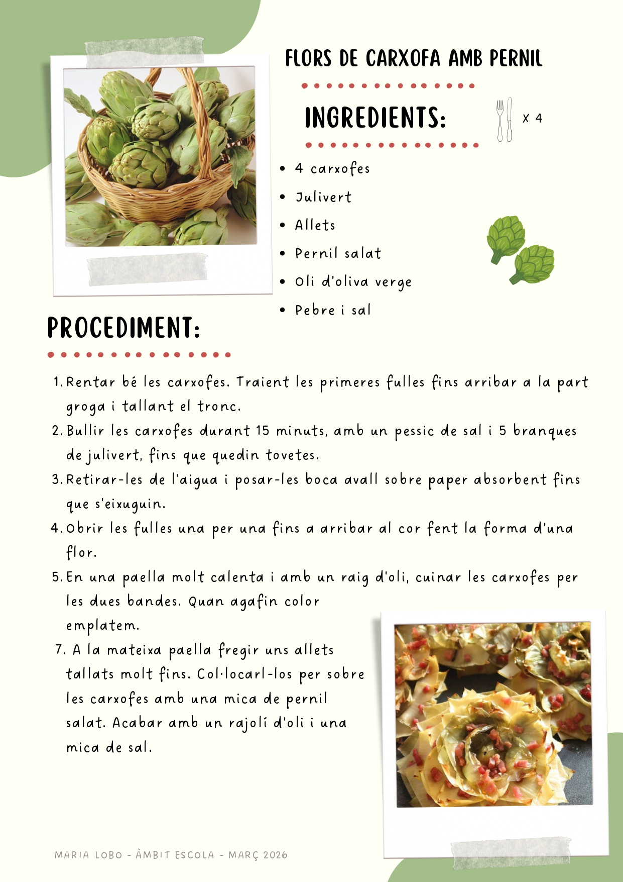 La recepta del mes es Flors de carxofa amb perfil, boníssima!